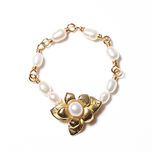 ■サイズ/[S]5号前後・[M]7号前後 - 花をかたどったモチーフが可憐なピンキーリング。ランダムな形の淡水パールが、手元を、よりナチュラjレであたたかみのある印象に見せる。