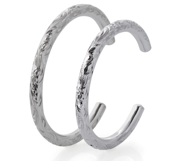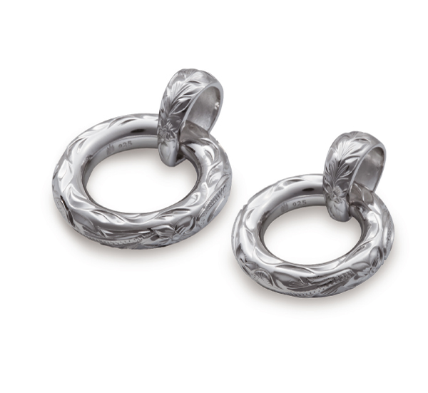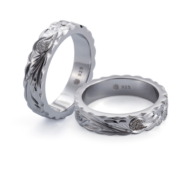 プルメリアの彫りがステキなペアリング。花言葉は「親愛」「魅力」。大切な人の幸せを願う贈り物にぴったり。