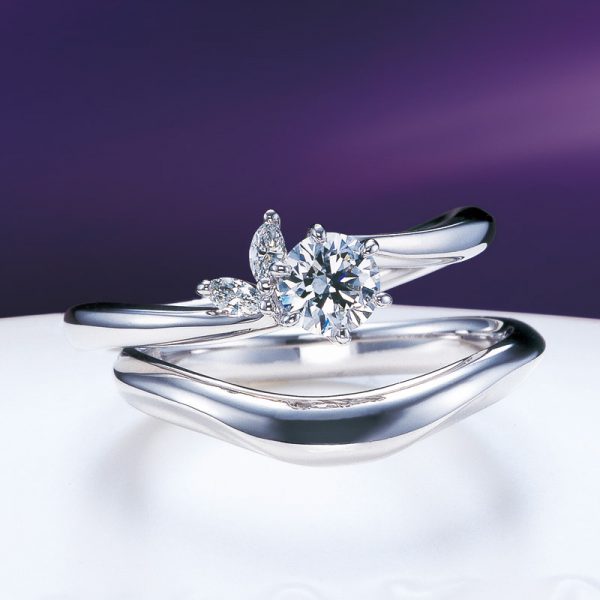- リングの緩やかなカーブは未来へと続く川の流れを、ダイアモンドは水面の輝きを表現。清らかな水の音のように穏やかな人生を歩むふたりをイメージしています。