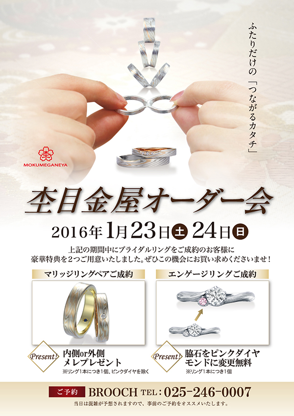 本日は明日(1月23日)から開催する「杢目金屋オーダー会」をご紹介いたします♪