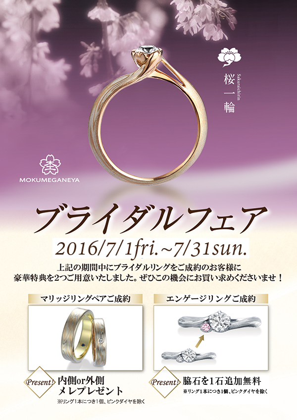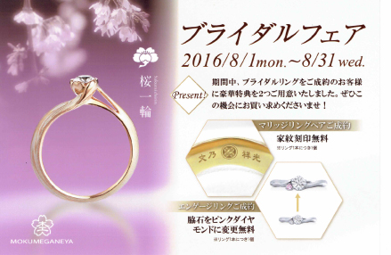 期間中、ご成約のお客様にマリッジリング・エタニティリングの内側に