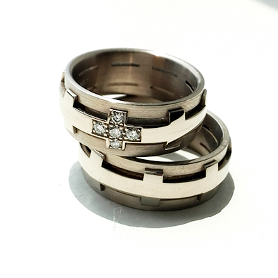 鍛造製法により圧縮加工された金属マテリアルは、硬度の高い、耐久性に優れたリングになります。