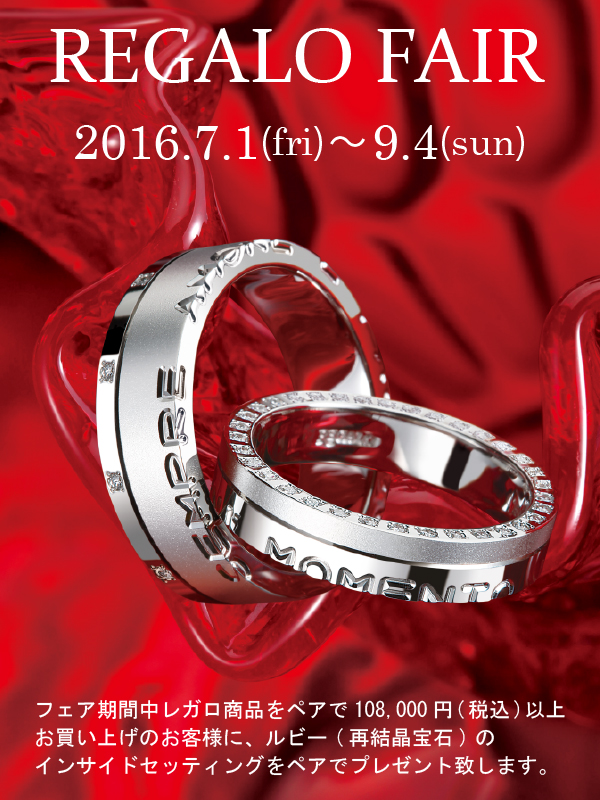 フェア期間中レガロ商品をペアで108,000円(税込)以上お買い求めのお客様に