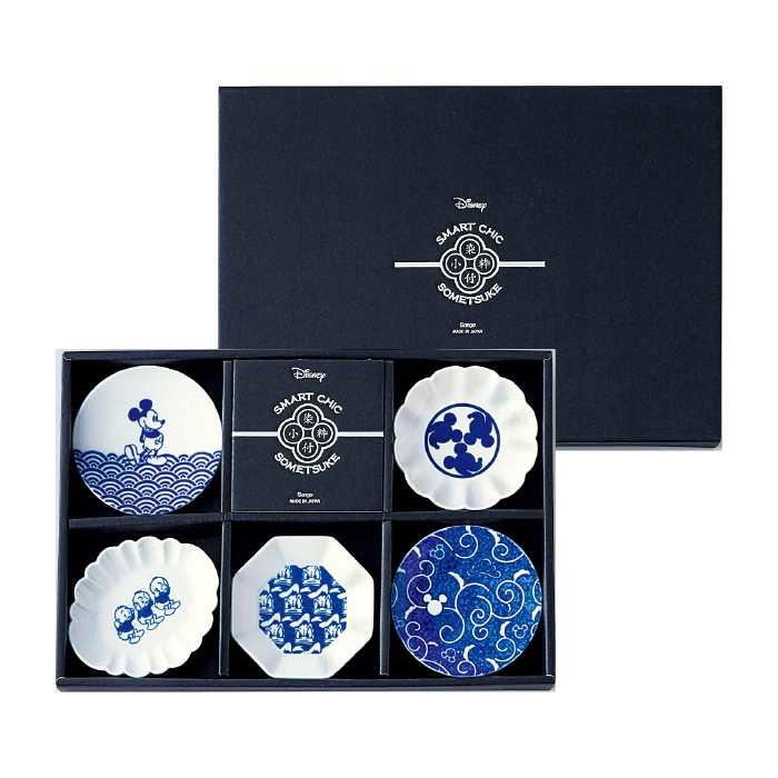 伝統的な和の紋様を取り入れつつ、ディズニーのキャラクターを今の時代にあったアレンジで小粋に仕上げた染付の器です。伝統的でありながらモダンな形状と、少しにじんだ染付けの風合いはどこか懐かしく、おもわず手にとって使いたくなります。