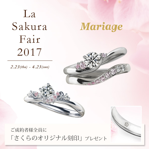 期間中にMariageの婚約指輪または結婚指輪をご成約で、リングの内側に「さくらのオリジナル刻印」をプレゼント!!