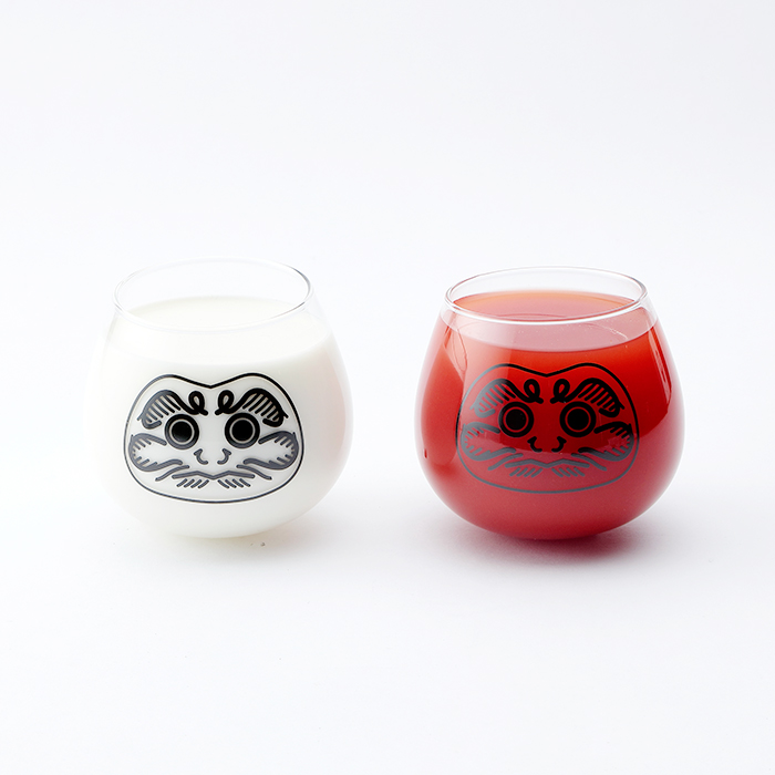牛乳を注げば白ダルマ、トマトジュースを注げば赤ダルマに。飲み物によって表情が変わります。