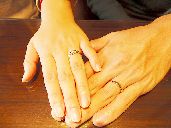動きのあるデザインも奥様の細身の指にぴったりでとてもお似合いでした!