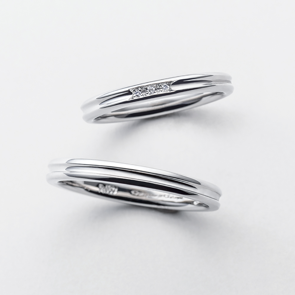 シンプルに真ん中に並んだダイヤモンドは控え目ながらも上品な輝きをみせます♪
