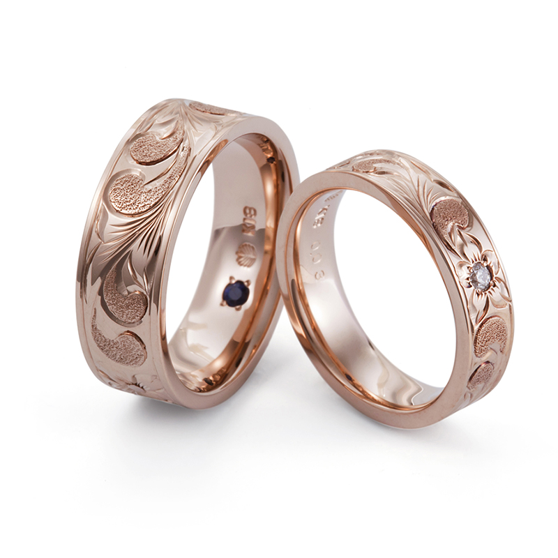 レディースリングには、マリッジリングには珍しく「バケット」のダイアモンドをセッティングしています。