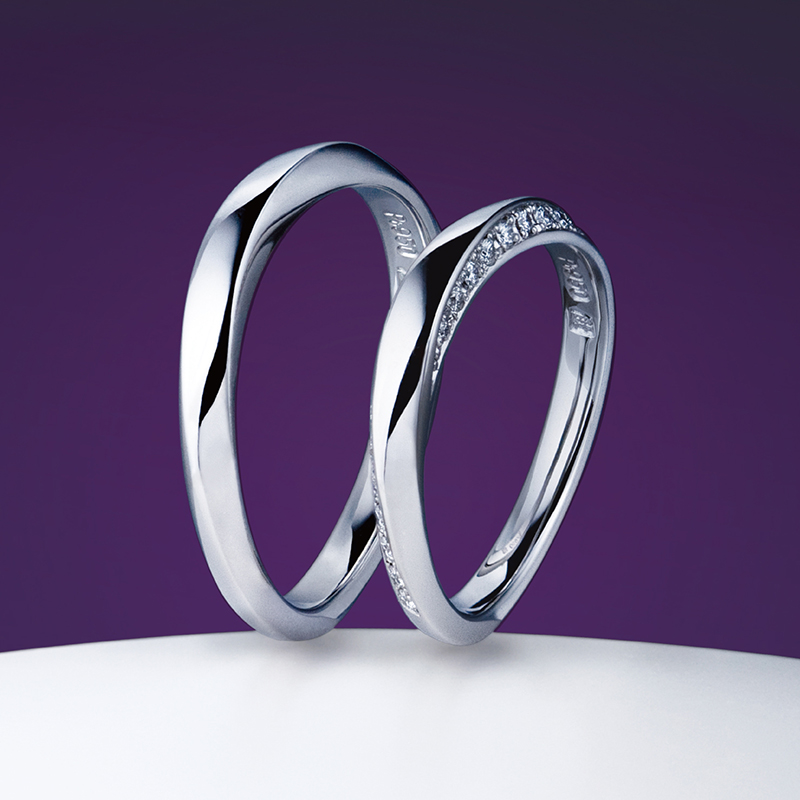 美しいシャープなラインの媚びない美しさが、ふたりの決意を象徴するかのようなデザイン。