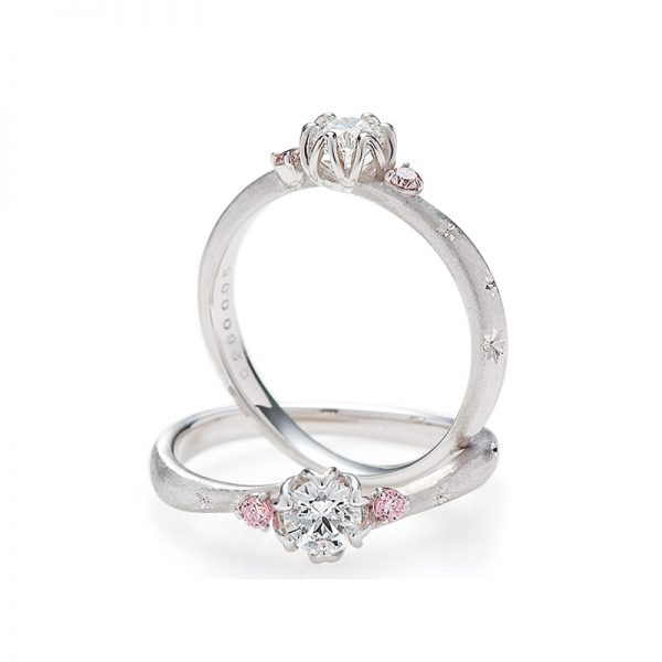 センターのダイヤモンドは6枚の花弁に支えられた雪割草の花のイメージで、