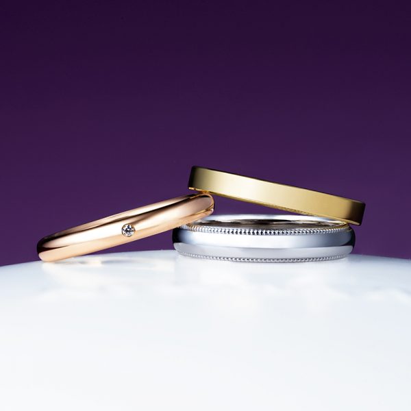 ペア感も備えつつ、2本で一つの世界を作り上げている一体感も感じさせてくれる、とても楽しいマリッジリングです。