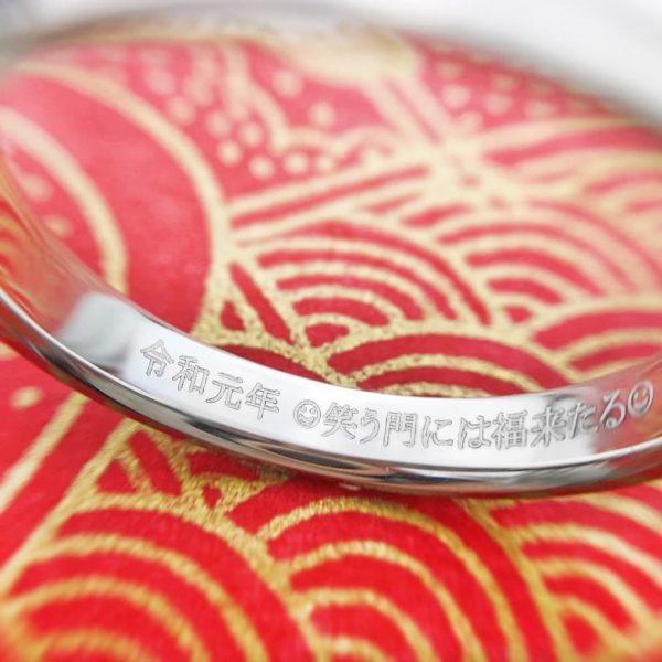 内側刻印では、日本が彫れるめずらしいオプションもあります!お名前を漢字でしっかり刻印できちゃうんです!「名前」はご両親がお子さんの幸せを願って考えてくれた生まれて初めてのプレゼントです。大切な意味と愛情が込められた自分たちの名前をそのまま指輪に刻むのがとってもオススメです!ちなみに、今年ですと「令和元年」の文字も人気ですよ♪