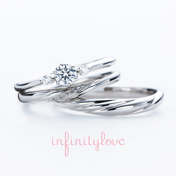 infinityloveの指輪は婚約指輪と結婚指輪と重ねて着けれるようにデザインされています。