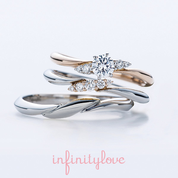 infinityloveの指輪は婚約指輪と結婚指輪と重ねて着けれるようにデザインされています。