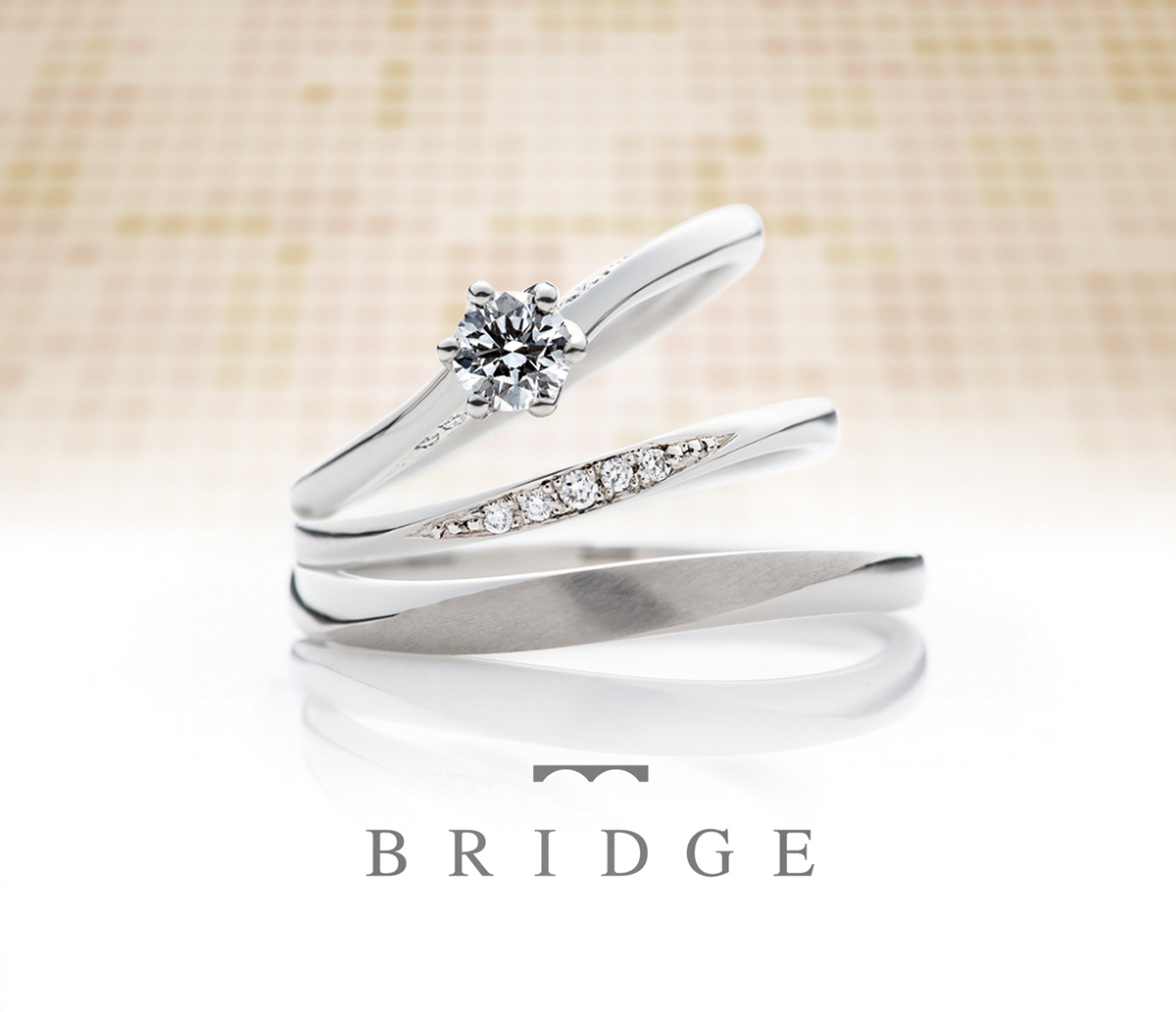 BRIDGEのブライダルリングはお互いの歴史を重ねる2人の”はしわたし”をコンセプトにしています。2人が出会い、揺るぎない絆で結ばれる「誓いの架け橋になりたい」という想いからデザインされた素敵なブランドです♪