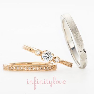 施し方によっては、ウェディングドレスのレースのように小さく華奢で、とても繊細な雰囲気を婚約指輪・結婚指輪に与えてくれます。