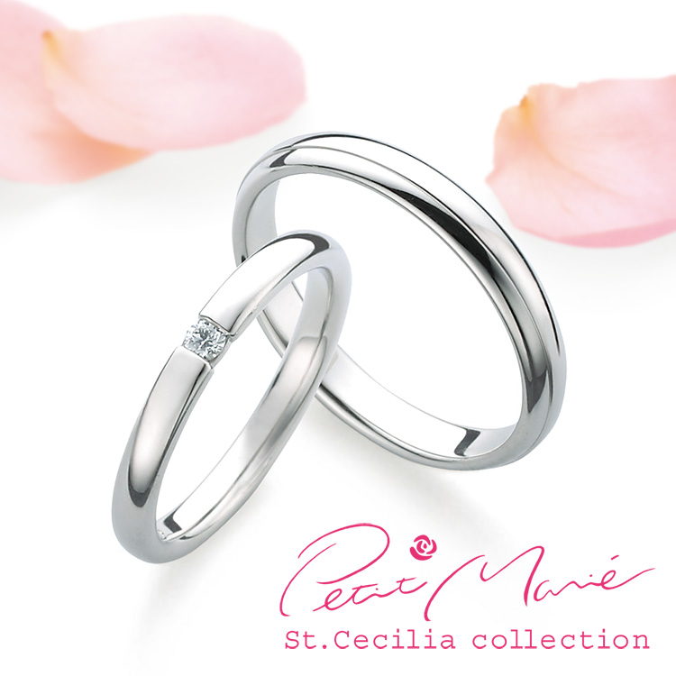 慈愛あふれるマリッジリング・コレクションプラチナのシンプルな甲丸タイプのリングに、女性は大きめのダイヤモンドを1石セッティング。シンプルなだけに、鍛造の美しい仕上がりを実感いただけます。(右)Men’s