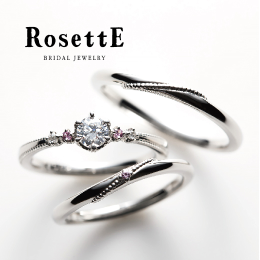 ブランドの名前に使われているrosette(ロゼット)とは、ヨーロッパで古くから伝わる”リボンの勲章”のことをあらわします。「尊敬と愛を込めて」おたがいに贈りあうロゼットは、ブライダルリングにピッタリですよね!!