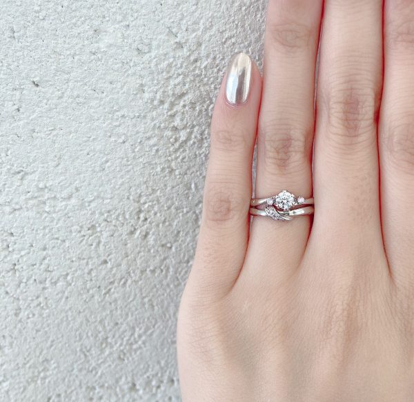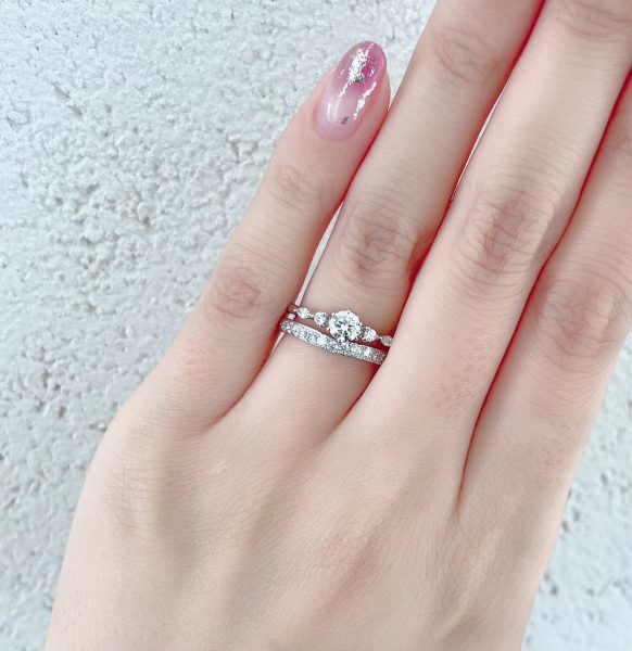 重ね着けがかわいい結婚指輪と婚約指輪をご紹介♪