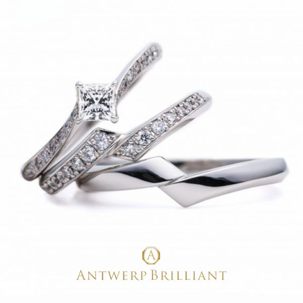 ベーシックなフォルムながら、センターに配したファンシーカットのすっきりとした輝きが個性的なシリーズです。