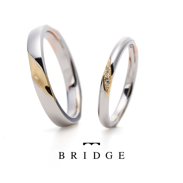 橋には大地の端と端を結ぶ”はしわたし”という意味が込められています。BRIDGEのブライダルリングはお互いの歴史を重ねる2人の”はしわたし”をコンセプトにしています。2人が出会い、揺るぎない絆で結ばれる「誓いの架け橋になりたい」という想いからデザインされた素敵なブランドです。