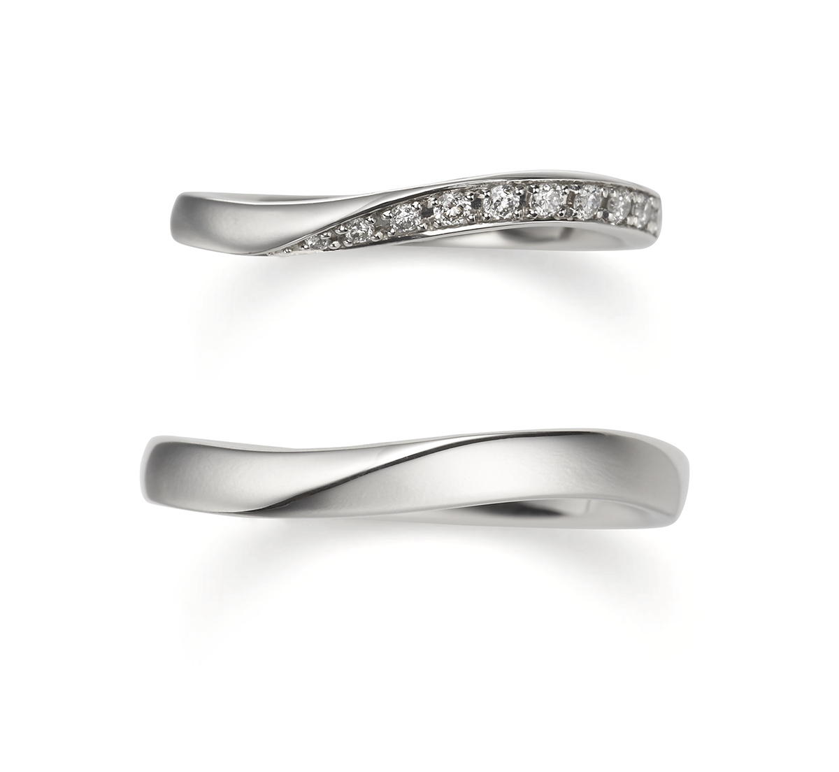 マリッジリングのレディスは透明感のある雪解け水が流れる様をデザインしています。