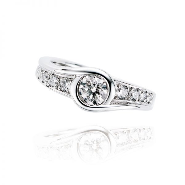 捻りの入ったウェーブがオシャレな婚約指輪クレッシェンド