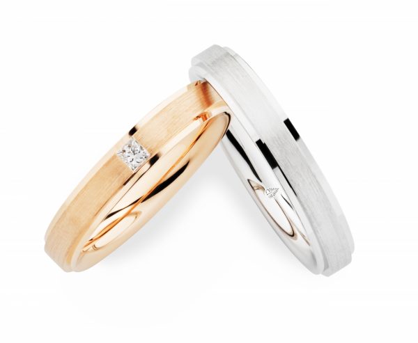 ドナウ川の流れをイメージしたラインとバイカラーの織りなす、egfの洗練を堪能できるスタイルは、オシャレでとてもかっこいいです。ボリュームがあるにもかかわらず、透かしを入れることで繊細な趣が加わっています。ドイツの指輪職人の技術力とデザイン性の高さをアピールしたマリッジリングです。