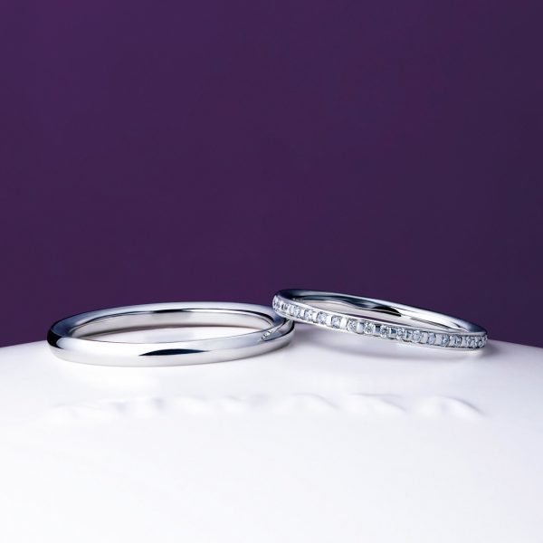 細くて重ね着けもしやすく、女性の指をより美しく見せてくれるシンプルデザインはサプライズプロポーズにピッタリのデザインです。