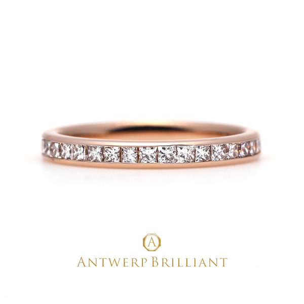デザイン以外で他と差をつけたい方は、四角いカットを施したプリンセスカットダイヤモンドのエタニティリングがおすすめです!