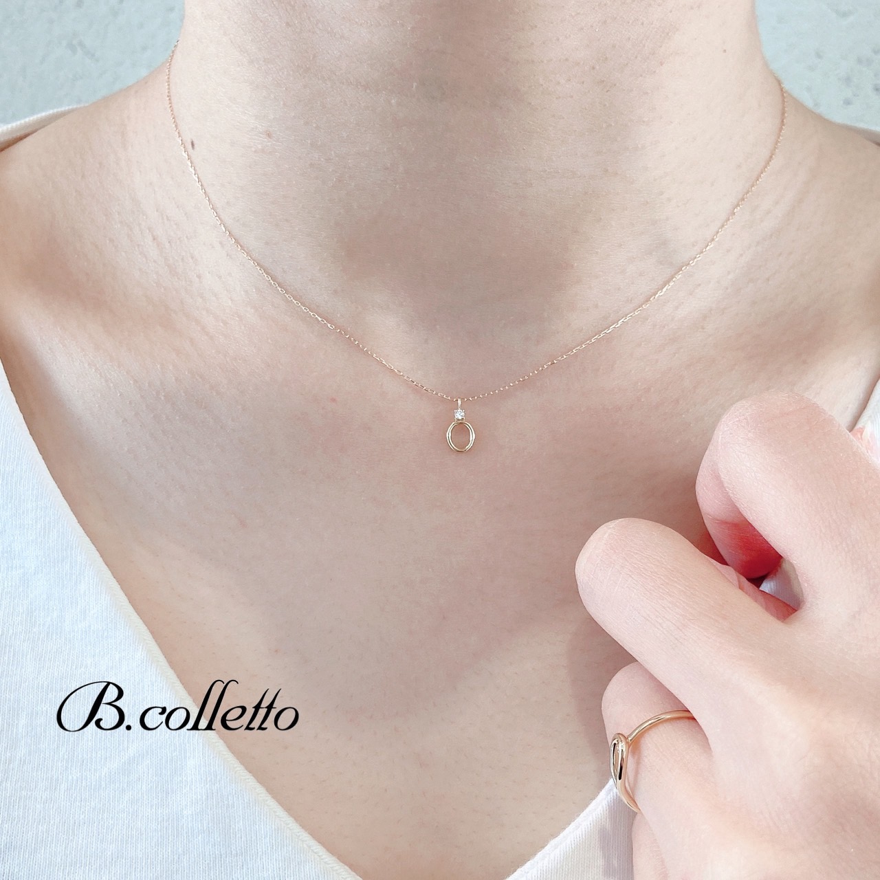 サークルの透かしのデザインも軽やかでどんなコーディネートにも身に着けることが出来ます。チェーンも華奢で首をきれいに見せてくれます。
