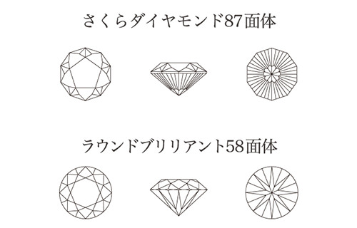 ラウンドブリリアントカットダイヤモンドとさくらダイヤモンドの違い