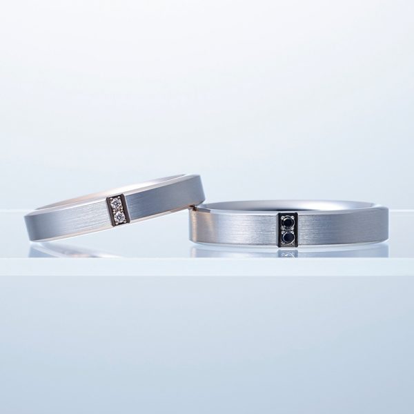 メンズのブラックダイアモンドとレディースのダイアモンドがそれぞれ縦に2石並んだデザイン。ペア感がしっかりあるのも嬉しいポイント。メンズもレディースもかっこよく着けたいならオススメな結婚指輪!また、それぞれ縦に2石ダイヤが並んでいるので、リングの幅がしっかりあるので存在感抜群です。