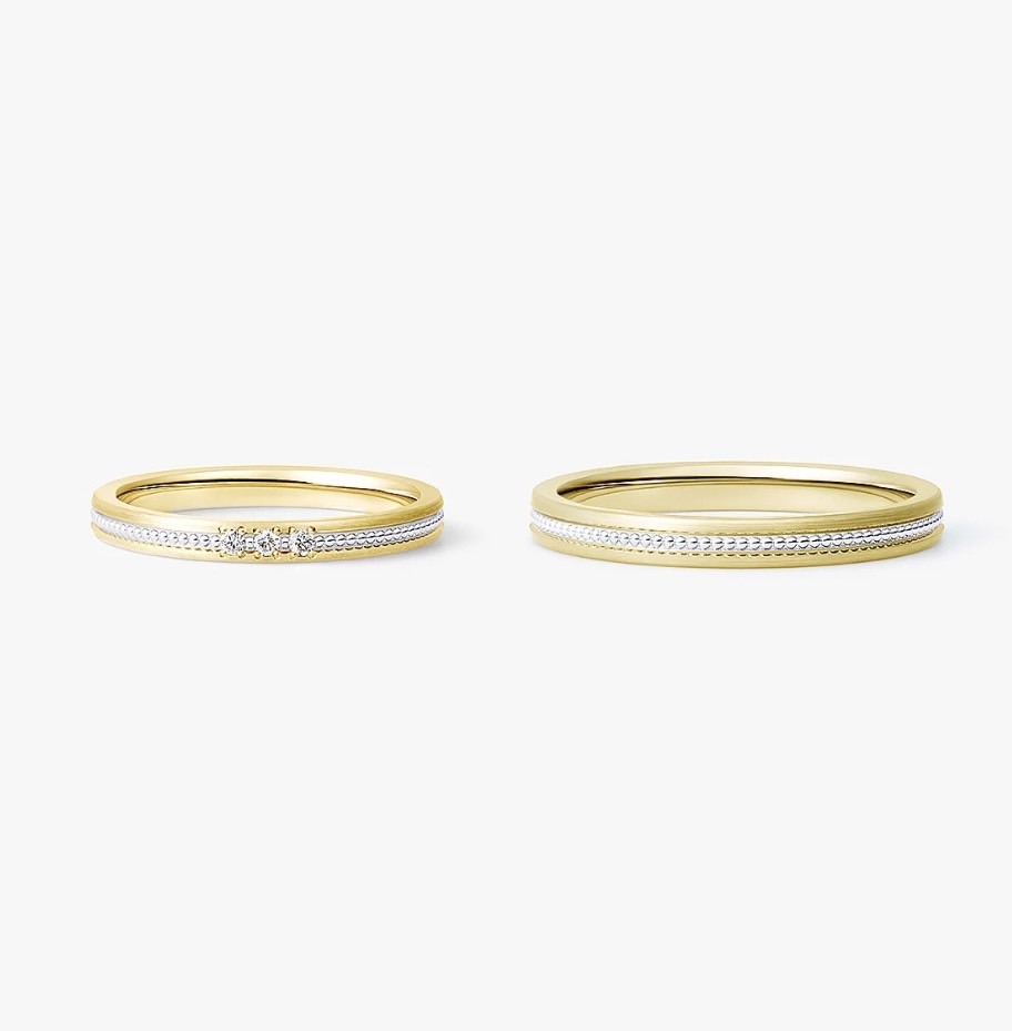 シンプルな雰囲気は残したまま、おしゃれな印象を与える結婚指輪です。