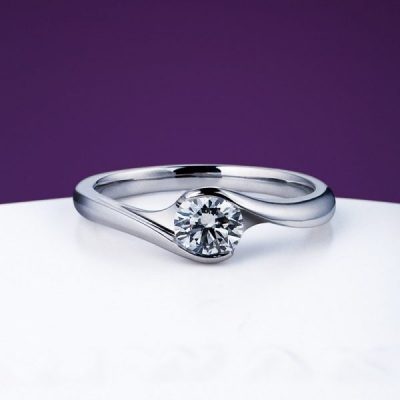 ダイヤモンドが中央に輝くエンゲージリングは、5つの爪でダイヤモンドを留めこむことで、まるで桜の一輪の花のような仕上がりになっています。