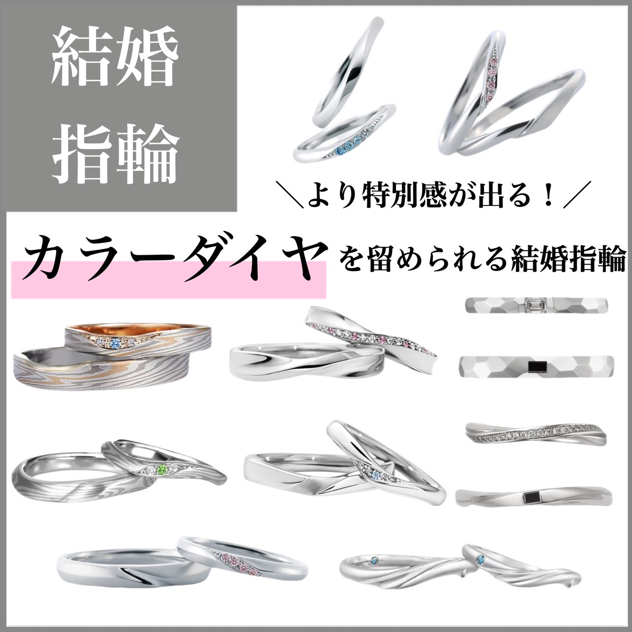 カラーダイヤモンドを留められる結婚指輪ブランドをご紹介します。