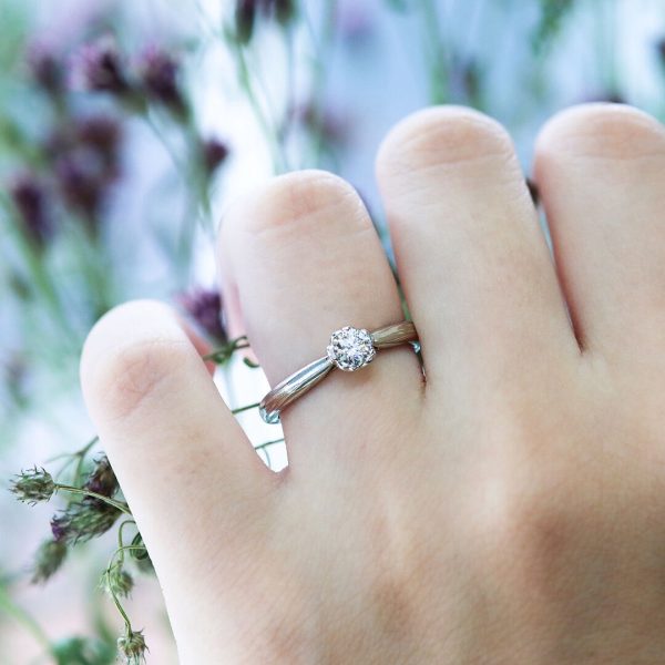 プロポーズリングとして贈る婚約指輪は、シンプルかつ大人かわいいデザインを選ぶことで、どんなシチュエーションにも似合う万能な一品になります。