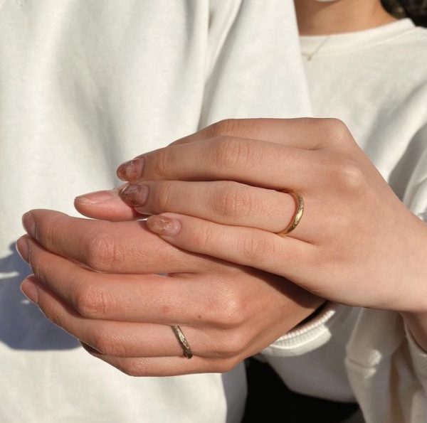ふっくらと弧を描く優しいフォルムがおふたりの指を包みます。