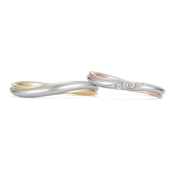 ピンクゴールドを用いたデザインの中で人気が高いのが、プラチナやホワイトゴールドとのコンビネーションリングです。