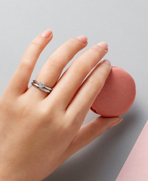 同シリーズのエンゲージリングとの重ね着けもおすすめです。