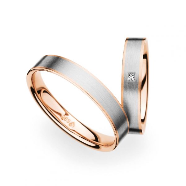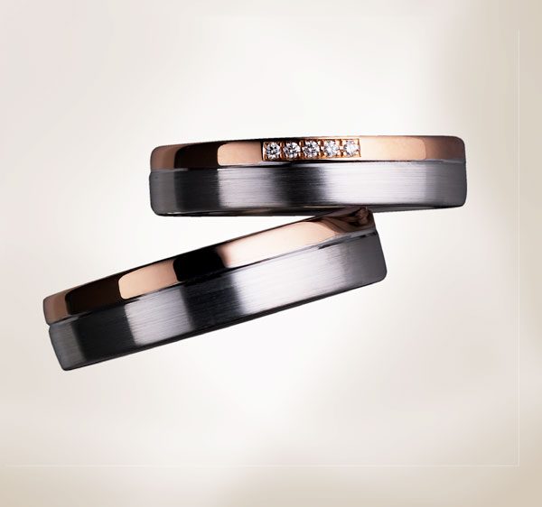レディースのリングのダイヤモンドがぐっと引き立つ結婚指輪です。