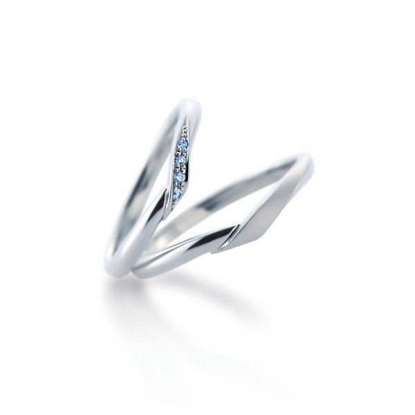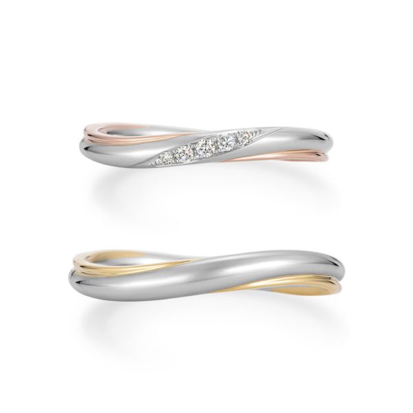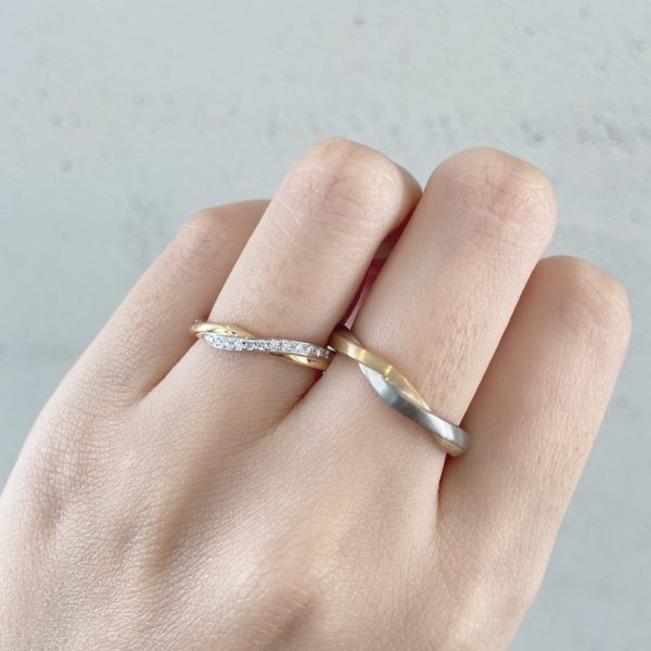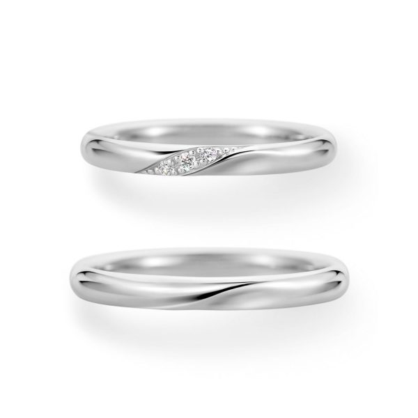 シンプルな角線をひねって生まれた自然のフォルムが立体的で美しいマリッジリングです。