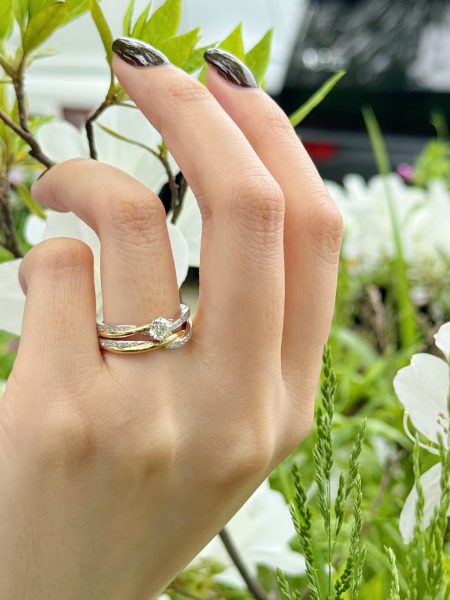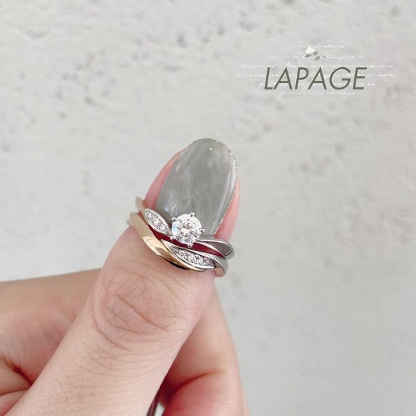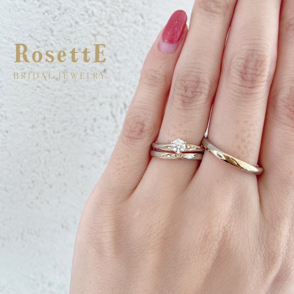 「なにげないひとときも ほんのちいさな出来事も二人だと ほら 不思議 世界のすべてが 輝き始める」というコンセプトを元に、お二人様が「互いに影になり、日向になりながら 助け合って生きていく これからの未来を」とイメージされたデザイン。ゴールドとシルバーのコンビリングで肌なじみの良い仕上がりとなっております。自分だけの特別なリングをお探しの方にぴったりリングです。マリッジリングは緩やかな描いたデザインとなっております。“何気なく過ぎていく日々の中で助け合うことを忘れないように”というお二人様の優しい気持ちを表現したコンビリングです。