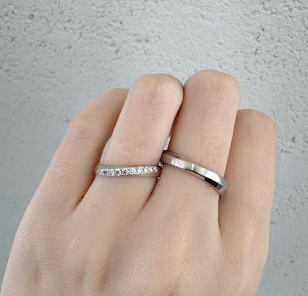 見る角度によって表情を変える立体的なフォルムは、シンプルながら個性を感じる人気モデルです。ペア感を大切にしたいカップルにぴったり。