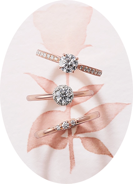リングの素材は、プラチナやゴールド(ホワイト、イエロー、ピンク)などがあります。