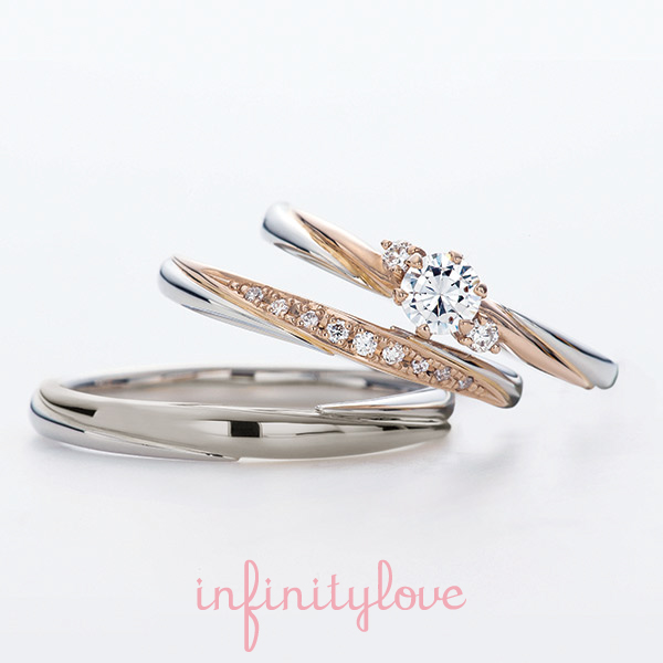 セットリングであればもちろんぴったり重なるのでとても素敵ですが、infinityloveのリングは他のデザインと組み合わせてもすごくオシャレです!店頭で色々試着して、自分ならではの重ね着けを見つけるのもオススメです!