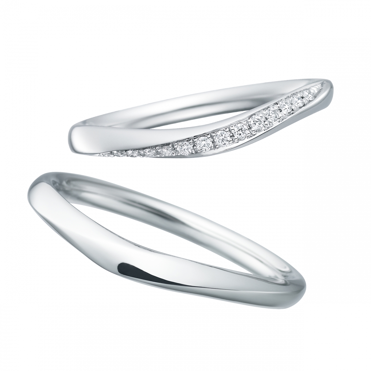 笹の葉を折り組んで作った笹舟をイメージした結婚指輪は、スッキリとした輪郭と緩やかなウエーブラインが絶妙なデザインです。