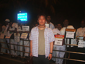成田から13時間掛かってようやくムンバイの空港に到着、日本からは飛行時間で約10時間の道のり、深夜(24時)なのにもかかわらず空港出口付近には何しろ人だかりがすごい!(写真上左)空港前のタクシー乗り場、中には怪しい奴もちらほら・・・