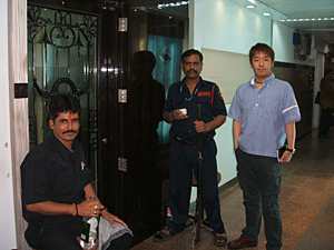 インドは軍事国なのでインド人は用も無いのに出国入国が出来ない国なのです!日本から行くにはVISAが必要です。僕のVISAは写真の右側の息子が取ってくれました、というわけで、鉄砲を持ったガードマン二人に守られたサイトホルダーの玄関を入って行くと、流石に今回で4回目ということもあって皆顔馴染みが出迎えてくれます。